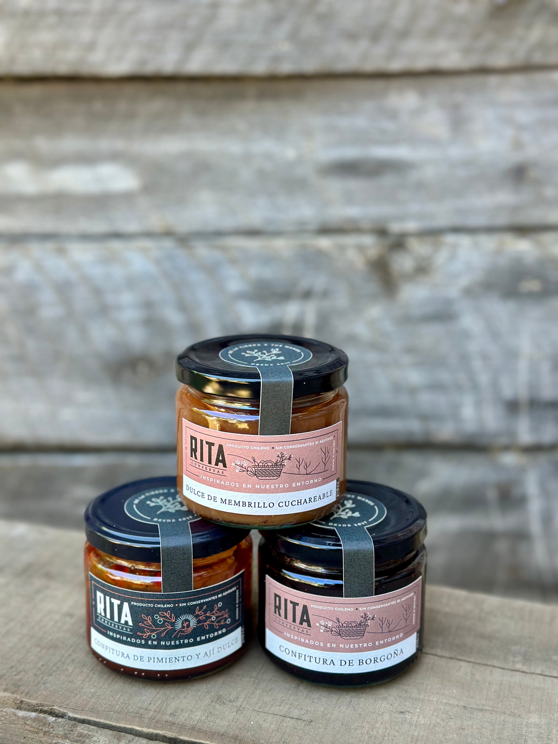Pack trio para quesos: Borgoña, dulce de membrillo y confitura de pimiento.
